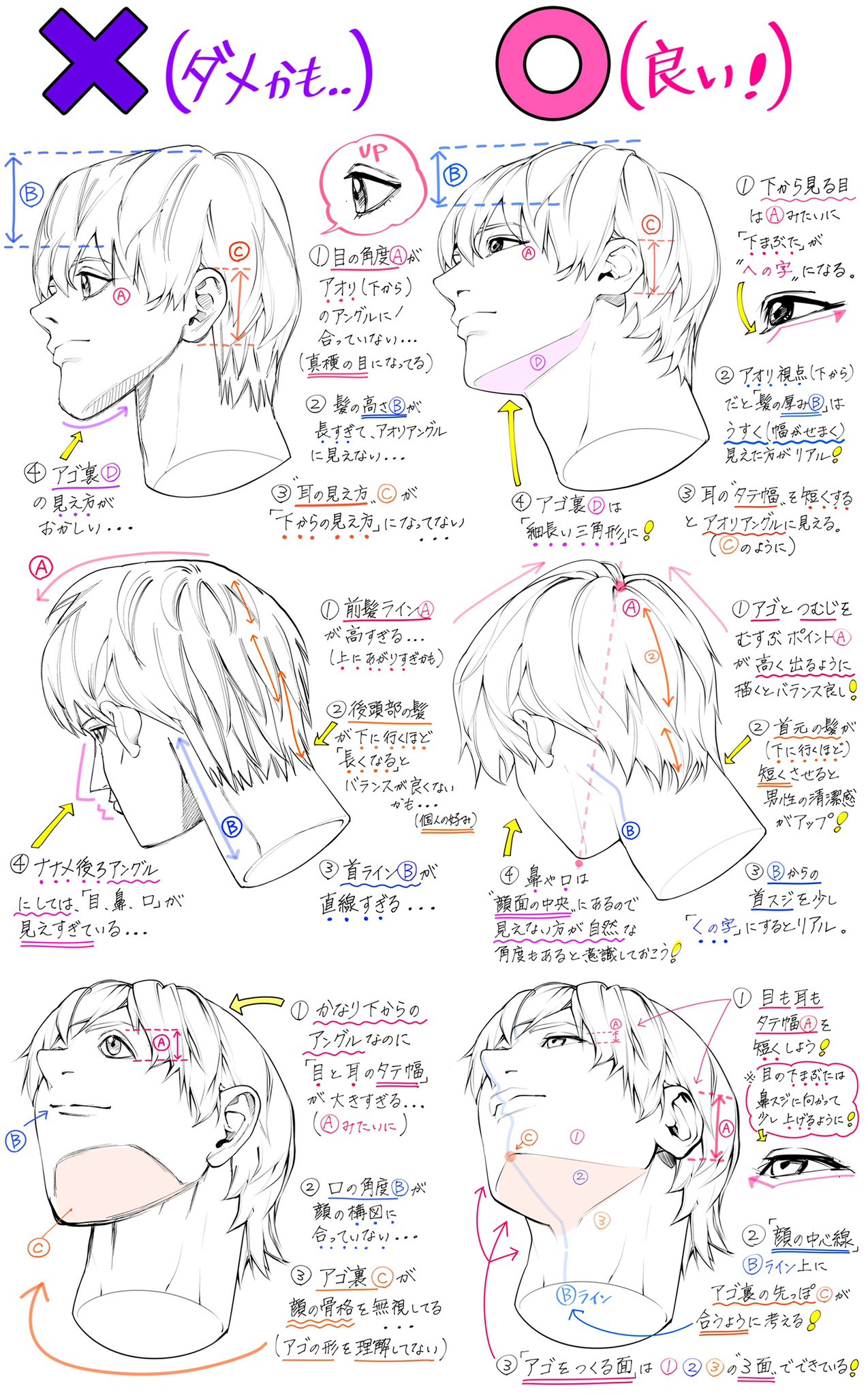 吉村拓也 イラスト講座 顔の構図アングルの描き方 髪の毛 アゴの構図 が上達する ダメなこと と 良いこと 過去のイラスト講座全集 T Co Qvpfjso1ss